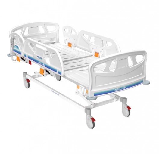 O leito é articulado em quatro seções com bandejas removíveis em ABS.