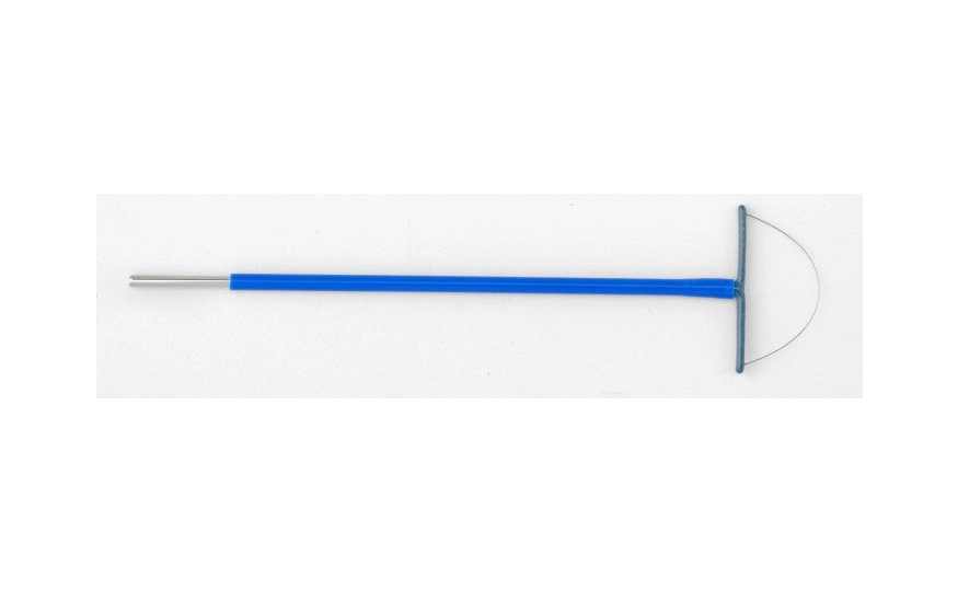 Meia-alça de tungstênio, d 0,2 mm x b 30 mm x a 15 mm, haste 120 mm.