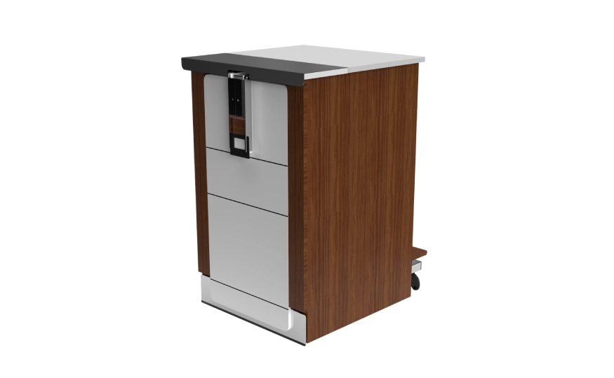 Essa peça de arte também dispõe de uma mesa de refeição interna e dois espaços (interno e superior) para a guarda dos pertences do paciente.
